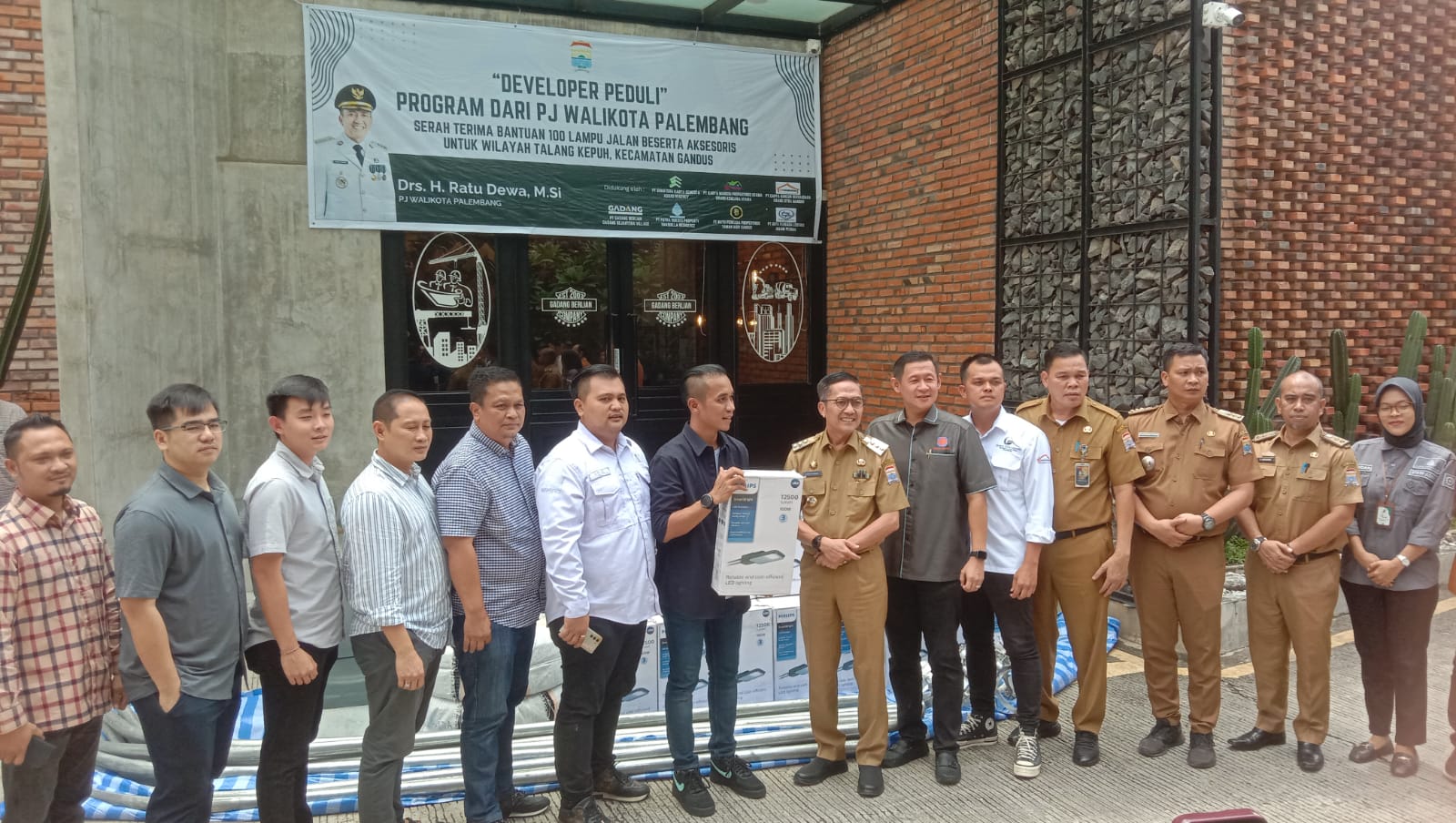 Diketahui, bantuan 100 Lampu Jalan Beserta Aksesoris tersebut diberikan oleh 7 Developer Perumahan yang berada di bawah naungan DPD Real Estate Indonesia (REI) Sumsel melalui program Developer Peduli.
