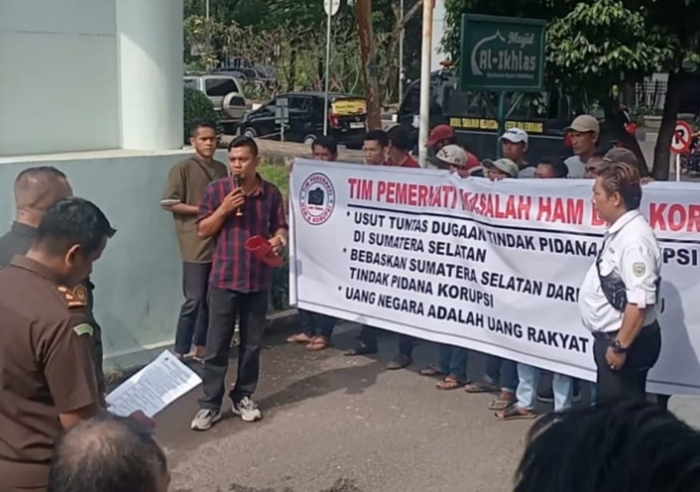 Palembang | Tintamerah.co.id – Puluhan massa LSM Tim Pemerhati Masalah HAM dan Korupsi (TPMHK) Sumatera Selatan (Sumsel) menggelar aksi demo di halaman Kejari Palembang, Kamis (4/7/2024). Mereka mendesak Kajari Palembang mengusut dugaan korupsi pada proyek PU Bina Marga dan Tata Ruang bidang Sumber Daya Air (SDA) kota Palembang.