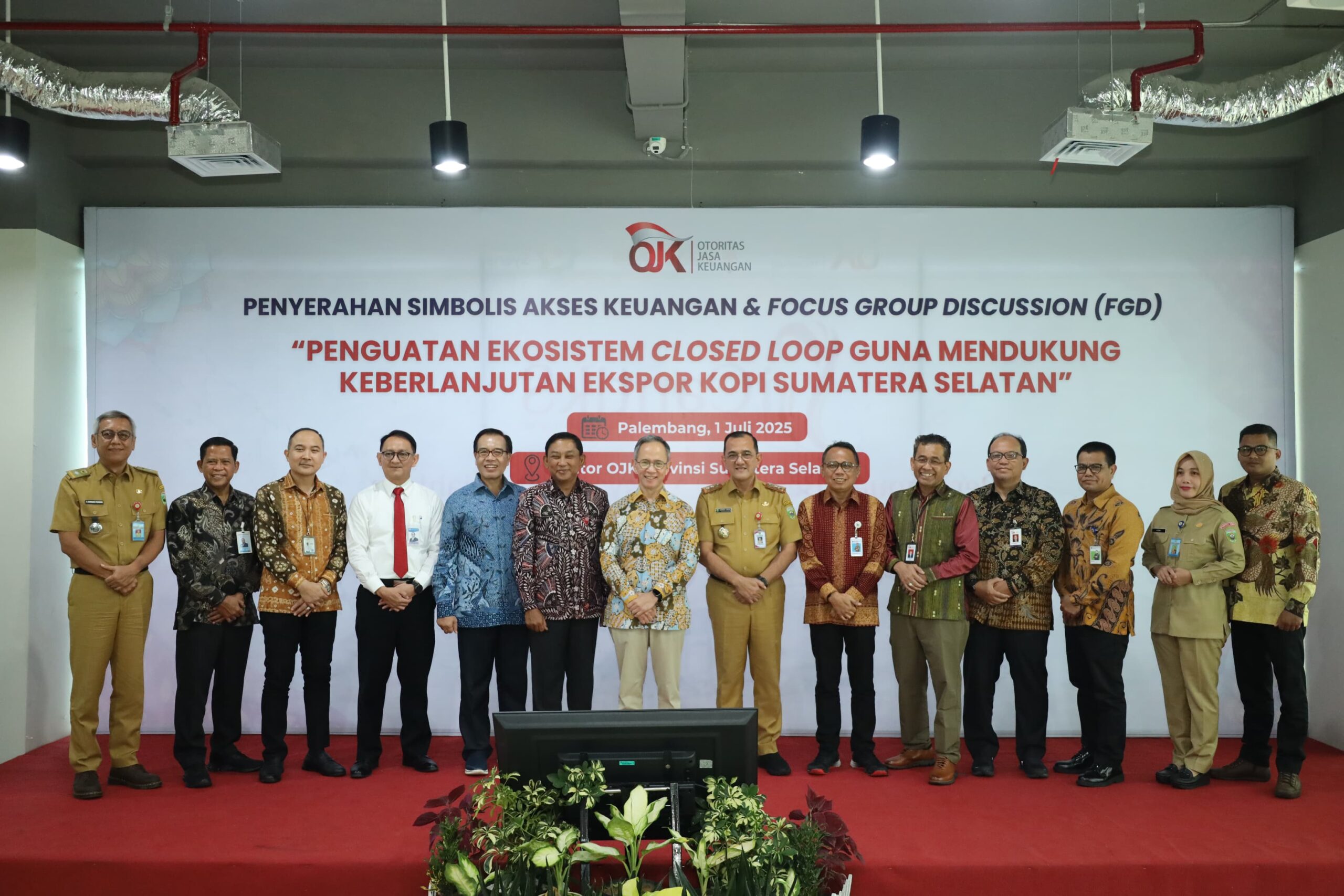 Palembang, tintamerah.co.id – Otoritas Jasa Keuangan (OJK) Provinsi Sumatera Selatan menyelenggarakan kegiatan Penyerahan Simbolis Akses Keuangan dan Focus Group Discussion (FGD) dengan tema “Penguatan Ekosistem Closed Loop Guna Mendukung Keberlanjutan Ekspor Kopi Sumatera Selatan” di Gedung OJK Sumsel. Kegiatan ini mempertemukan pemerintah pusat-daerah, lembaga keuangan, dan pelaku usaha untuk mendorong produktivitas kopi Sumsel sebagai komoditas utama melalui skema Kredit Usaha Alat dan Mesin Pertanian (Alsintan) dan pembiayaan terintegrasi hulu ke hilir kepada lebih dari 198 ribu petani dan pelaku usaha kopi.