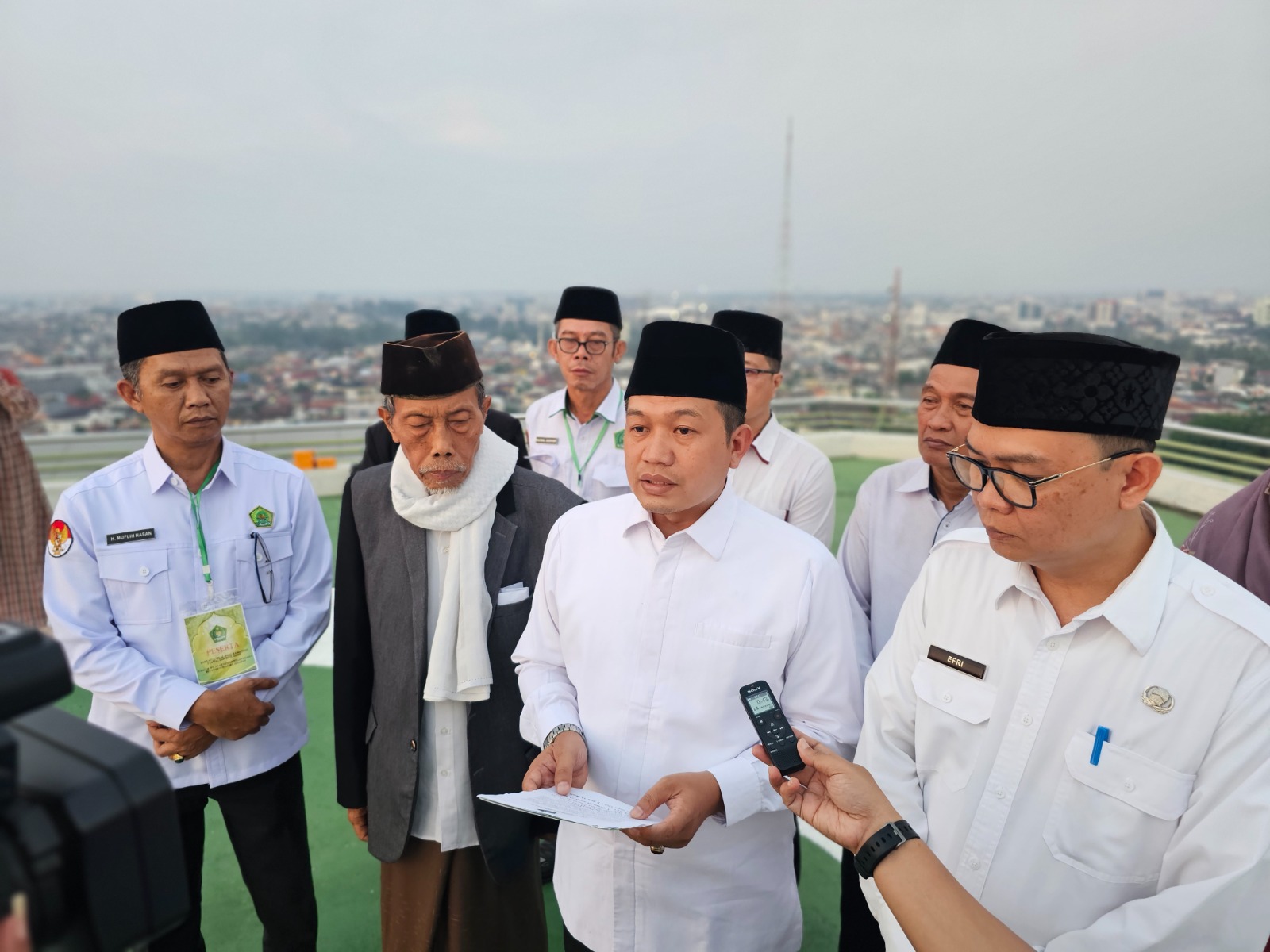 Palembang, tintamerah.co.id -Kantor Wilayah Kementerian Agama Provinsi Sumatera Selatan menggelar rukyatul hilal (pemantauan hilal) untuk mendukung penetapan 1 Zulhijjah 1446 H. Kegiatan pemantauan hilal dipimpin Kepala Bagian Tata Usaha Kanwil Kemenag Sumsel H. Taufiq di Helipad Hotel Aryaduta Palembang, Selasa (27/05/2025) sore.