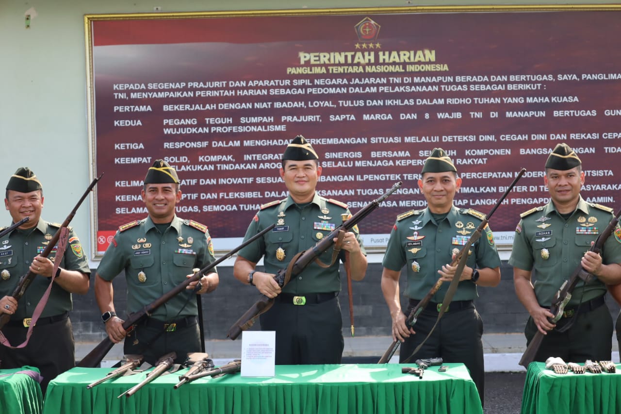 “Alhamdulillah Prajurit kita telah berhasil mengetuk hati masyarakat yang masih menguasai senjata, dengan sukarela mereka memberikan kepada prajurit kita di wilayah masing-masing. Ini merupakan keberhasilan prajurit kita dalam rangka pembinaan teritorial,” lanjut Danrem.