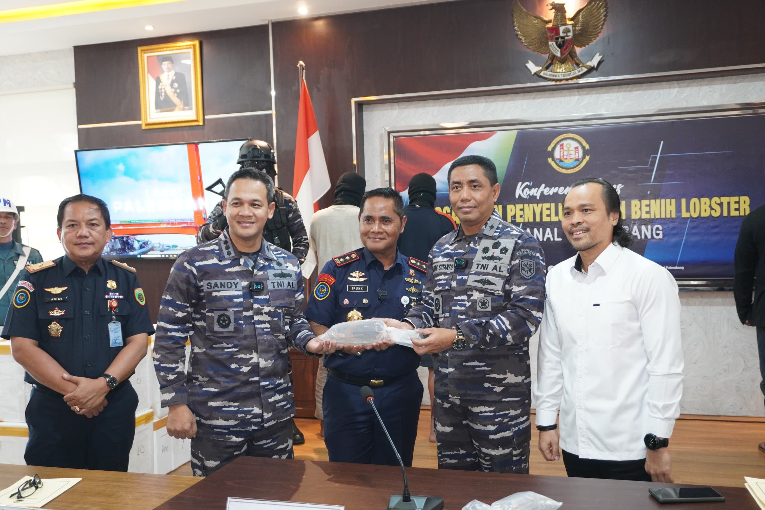 Komandan Gugusan Keamanan Laut (Danguskamla) Koarmada I, Kolonel Laut (P) Anung Sustanto, S.Sos., M.Si., M.Han mengapresiasi upaya penggagalan penyelundupan benih lobster oleh Lanal Palembang.
