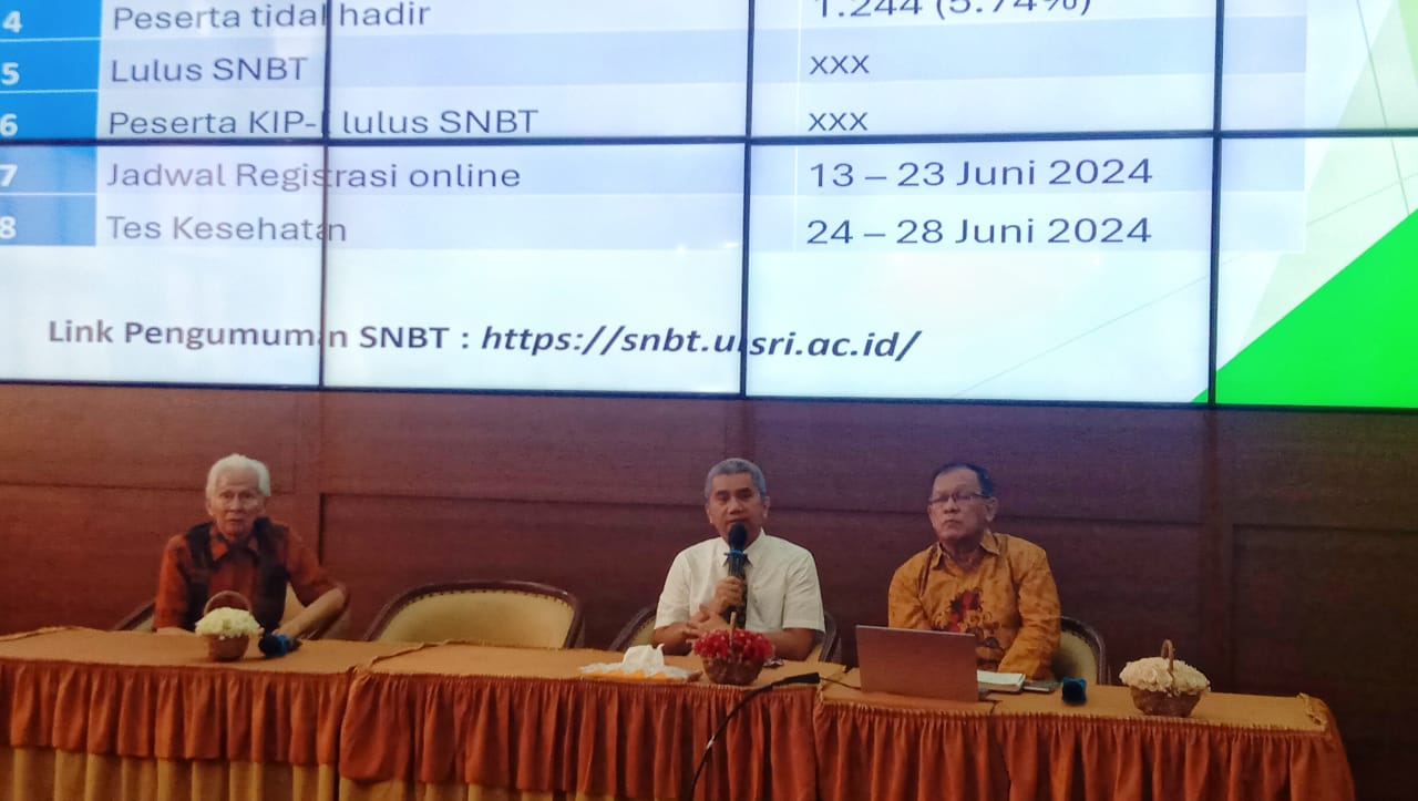 Hal tersebut diungkap langsung Rektor UNSRI Prof Dr Taufiq Marwa, S.E, M.Si. Wakil Rektor I UNSRI Prof Dr Ir H Rujito Agus Suwignyo, M. Agr, Koordinator Hubungan Masyarakat (Humas) Penerimaan Mahasiswa baru sekaligus Direktur Badan Pengelola Usaha (BPU) UNSRI Prof Dr Zulkifli Dahlan, M.Si., DEA di Kampus Unsri Bukit, Kamis (13/6/2024).
