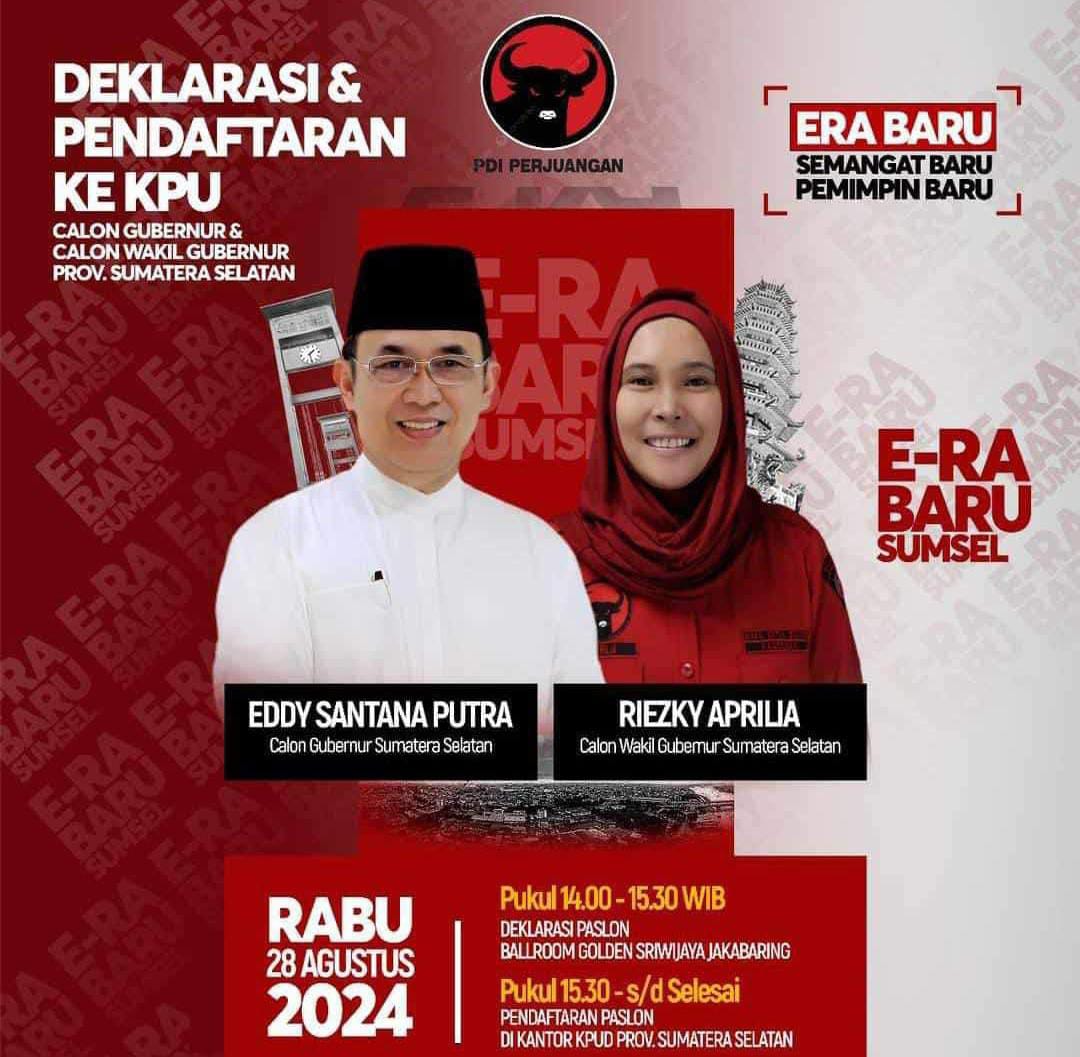 Deklarasi ini menjadi momen penting bagi PDIP dan pendukung bakal pasangan calon E-RA dalam memulai kontestasi pemilihan kepala daerah (pilkada) Provinsi Sumatera Selatan Tahun 2024.