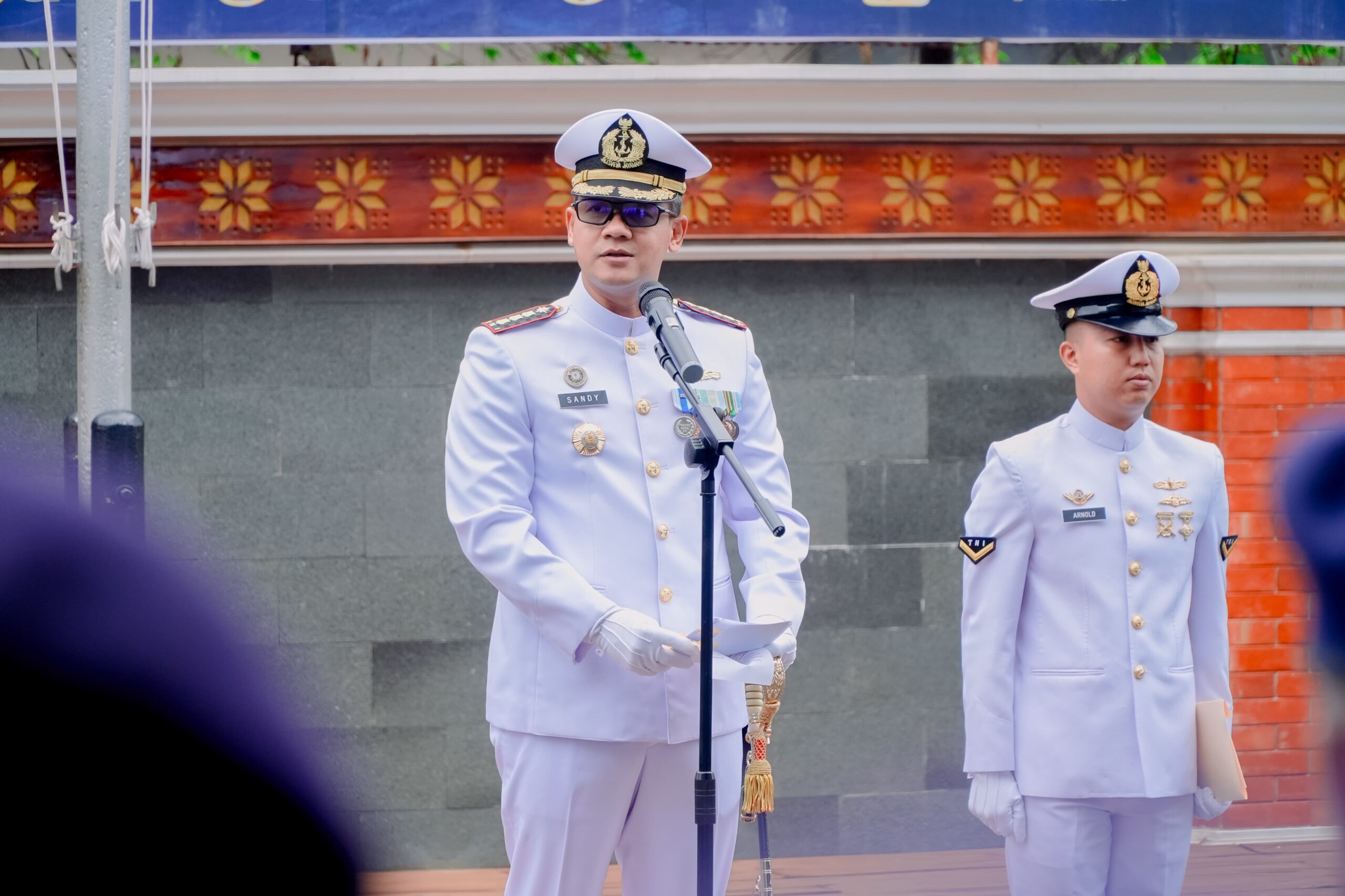 Pada upacara ini, PgS. Perwira Staf Administrasi dan Logistik (Pasminlog) Lanal Palembang, Letda Laut (KH) M. Lutpi bertindak selaku Perwira Upacara. Komandan Lanal (Danlanal) Palembang, Kolonel Laut (P) Sandy Kurniawan selaku Inspektur Upacara dan Komandan Patroli Keamanan Laut (Danpatkamla) Sungai Musi, Letda Laut (P) Djatmiko sebagai Komandan Upacara.