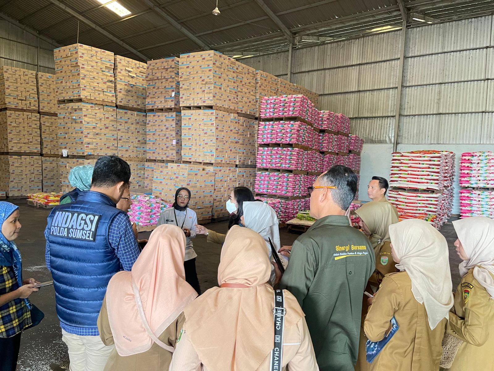 Tim meninjau gudang beras milik CV. LI CM dijalan Mayjen Singadekane keramasan Kota Palembang. Digudang yang memiliki stok sebanyak 250 ton beras ini hasil menampung dari petani sekitaran daerah Banyuasin dan Belitang dengan memproduksi beras berbagai merk harga jual Rp 13.700,- perkilogram.