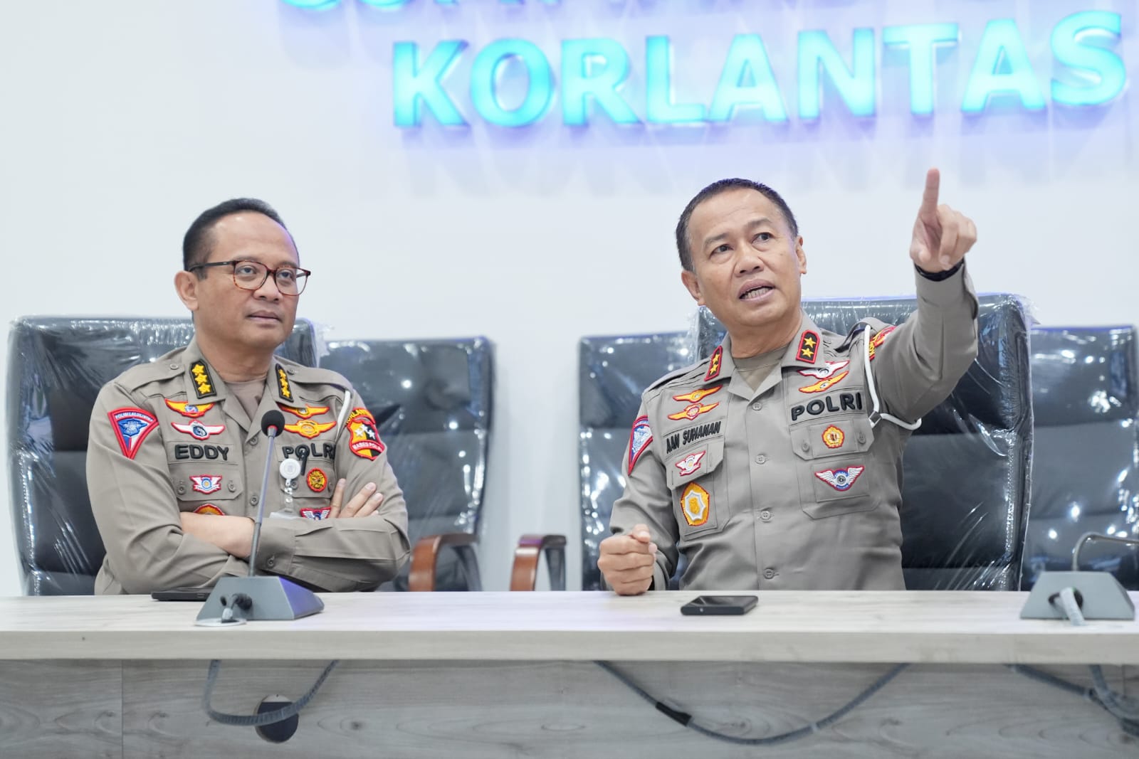 “Jadi hari ini kita meninjau Command Center untuk kegiatan operasi ketupat nanti ini bisa beroperasional, untuk melakukan beberapa tindakan secara cepat kita bisa memantau permasalahan-permasalahan yang ada di jalan secara real time untuk tindakan apa yang harus dilakukan,” ujar Kakorlantas Polri Irjen Pol Aan Suhanan.